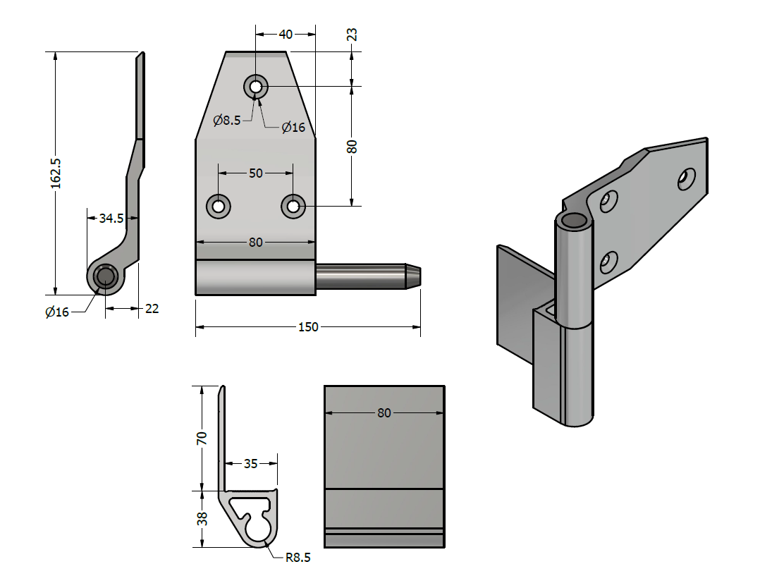 Leveres med skruemateriell for hengselbladet.