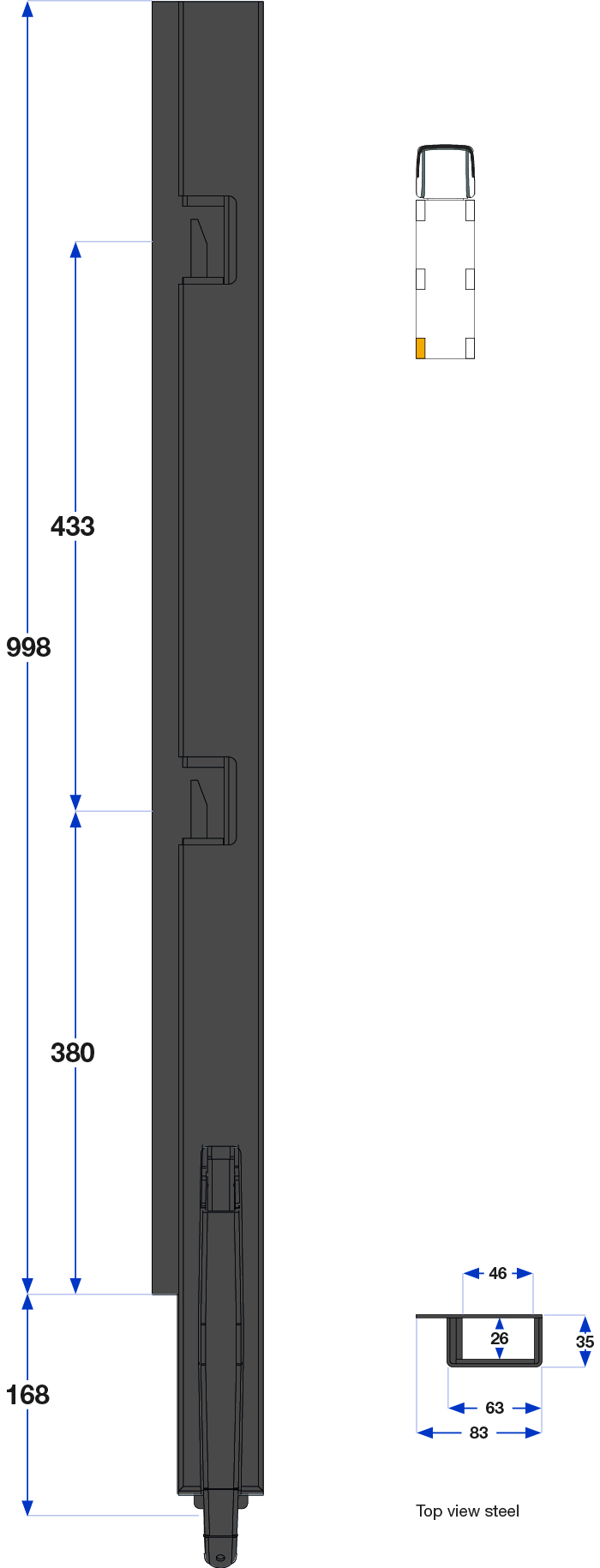Bakstolpe 1000mm venstre 63mm steel ED 2-port