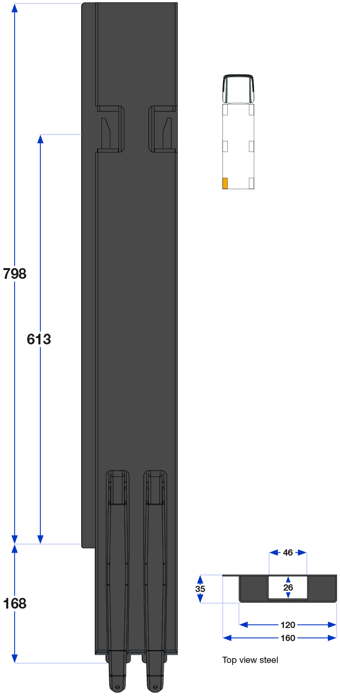 Bakstolpe 800mm venstre BBD 1-port