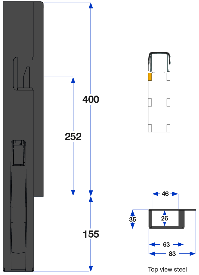 Forstolpe 400mm venstre 1-port