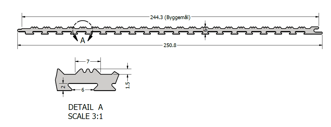 Overflate på profil kan serrateres.