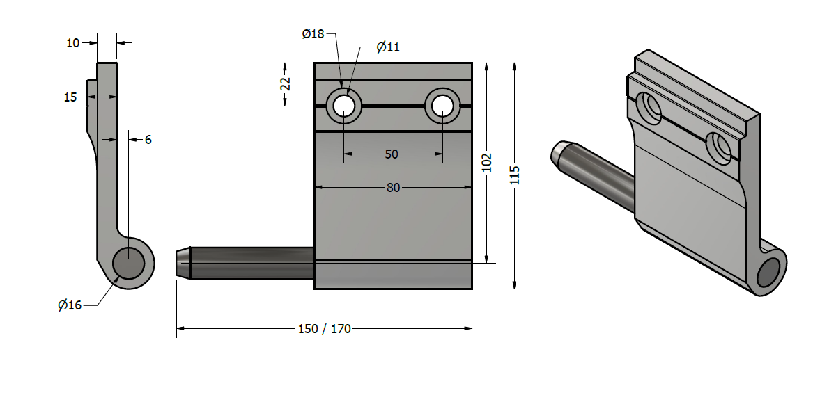 Hengsel for profil: HTR801, HTR809, XTR501, XTR678.