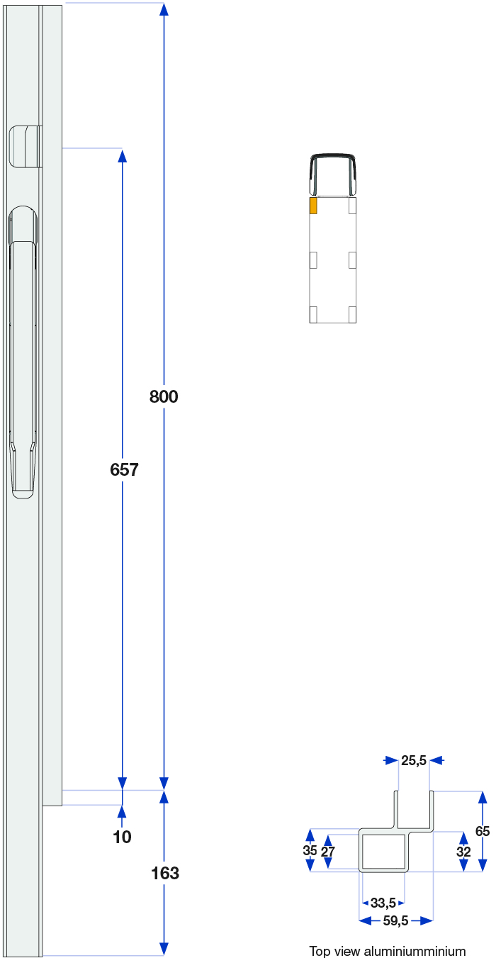 Forstolpe 800mm venstre TIR 1-port