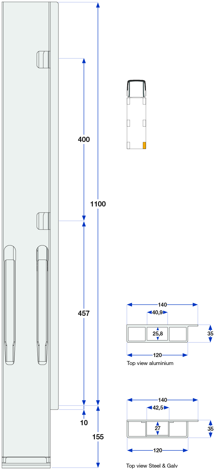Forstolpe 1000mm venstre boltet 2-port