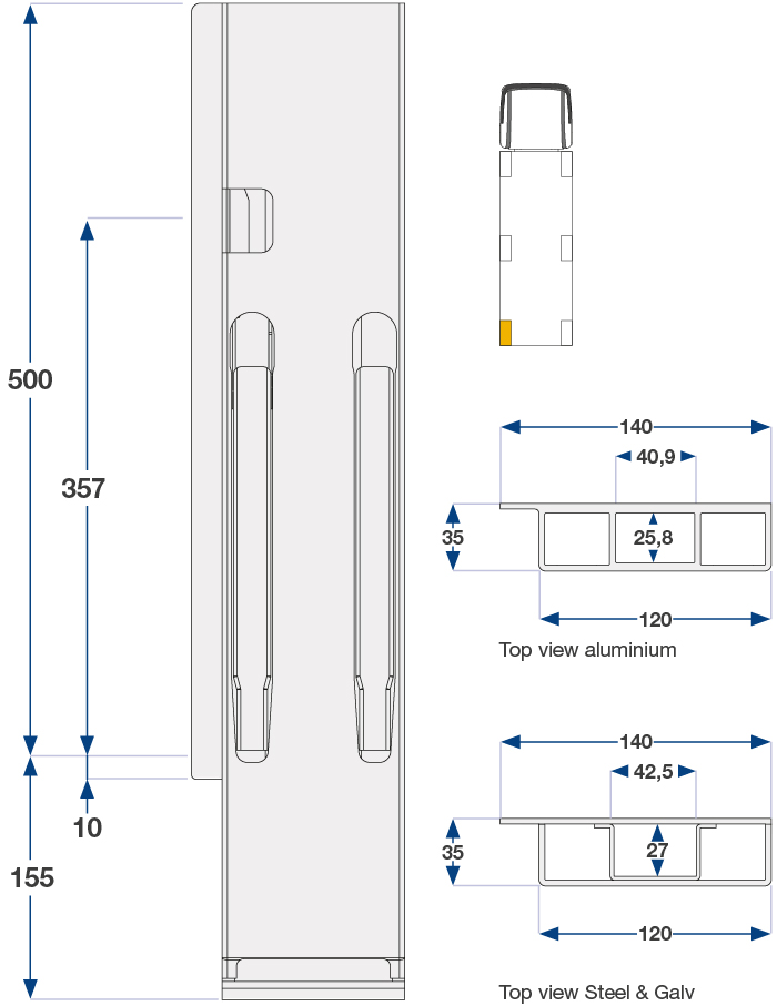 Bakstolpe 500mm venstre BBE 1-port