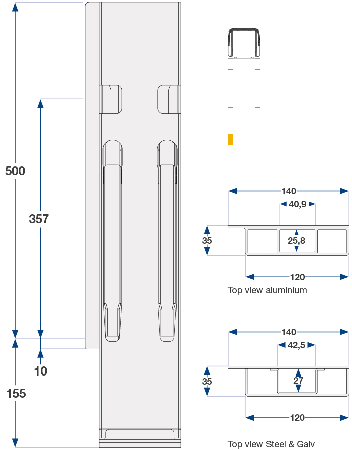Bakstolpe 500mm venstre BBD 1-port