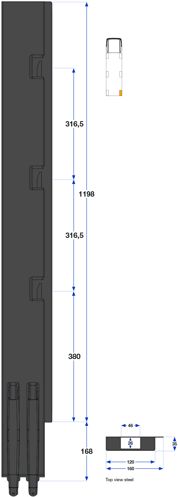 Bakstolpe 1200 mm høyre BBE 3-port