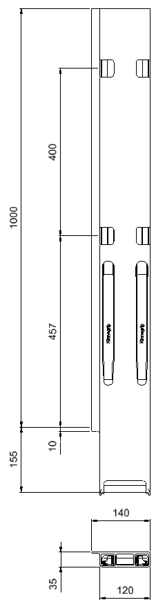 Kinnegrip bakstolpe 1000mm venstre BBD 2-port