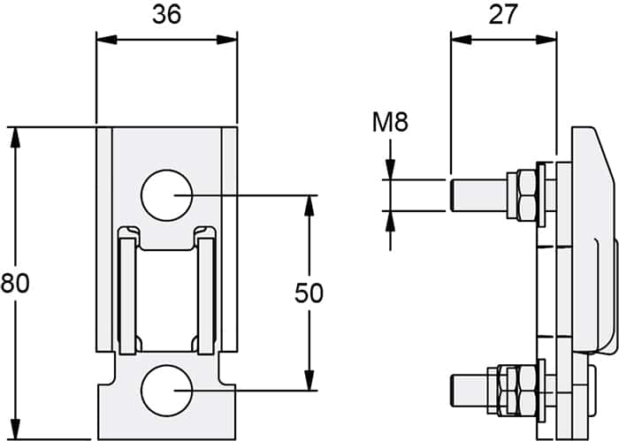 Kinnegrip sidestolpe støtte, lange skruer ED